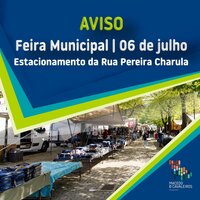 A Câmara Municipal informa que a Feira Municipal do próximo dia 06 de julho se vai realizar no Estacionamento da Rua Pereira Charula (junto ao Parque Urbano) dado que o Parque Municipal de Exposições se encontra indisponível.