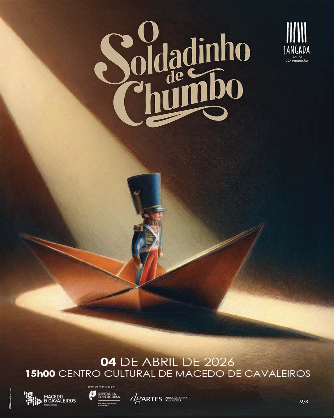 Inspirada no conto clássico de Hans Christian Andersen, esta criação da Jangada Teatro dá nova vida à história do soldadinho, numa encenação cheia de imaginação, humor e poesia. Através de uma linguagem contemporânea, música original e personagens surpreendentes, como o enigmático Saci ou o irreverente Arlequim, o espetáculo mergulha o público num universo onde os brinquedos pensam, sentem e sonham.
