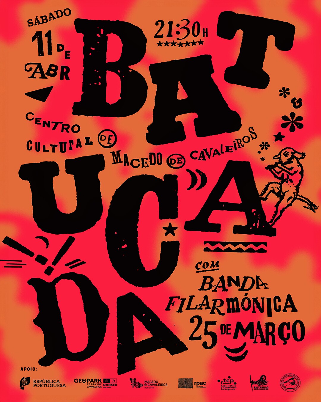 Os Batucada são um projeto musical criado por dois macedenses que cresceram juntos, movidos pela paixão pela gaita-de-foles e pelas percussões tradicionais. Com maturidade artística e espírito inovador, transformaram esta raiz sonora numa viagem que cruza a tradição transmontana com a estética urbana, atravessando influências da música eletrónica e do hip-hop. O seu trabalho temse distinguido pela recolha e preservação de repertório tradicional, reinterpretado com uma linguagem musical contemporânea e original.
