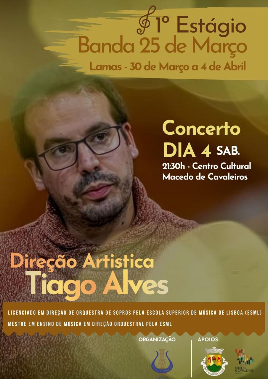 Após uma semana dedicada ao 1.º Estágio da Banda Filarmónica 25 de Março, marcada pela aprendizagem, pela partilha e pela paixão pela música, terá lugar o concerto final, sob a direção artística do maestro Tiago Alves.