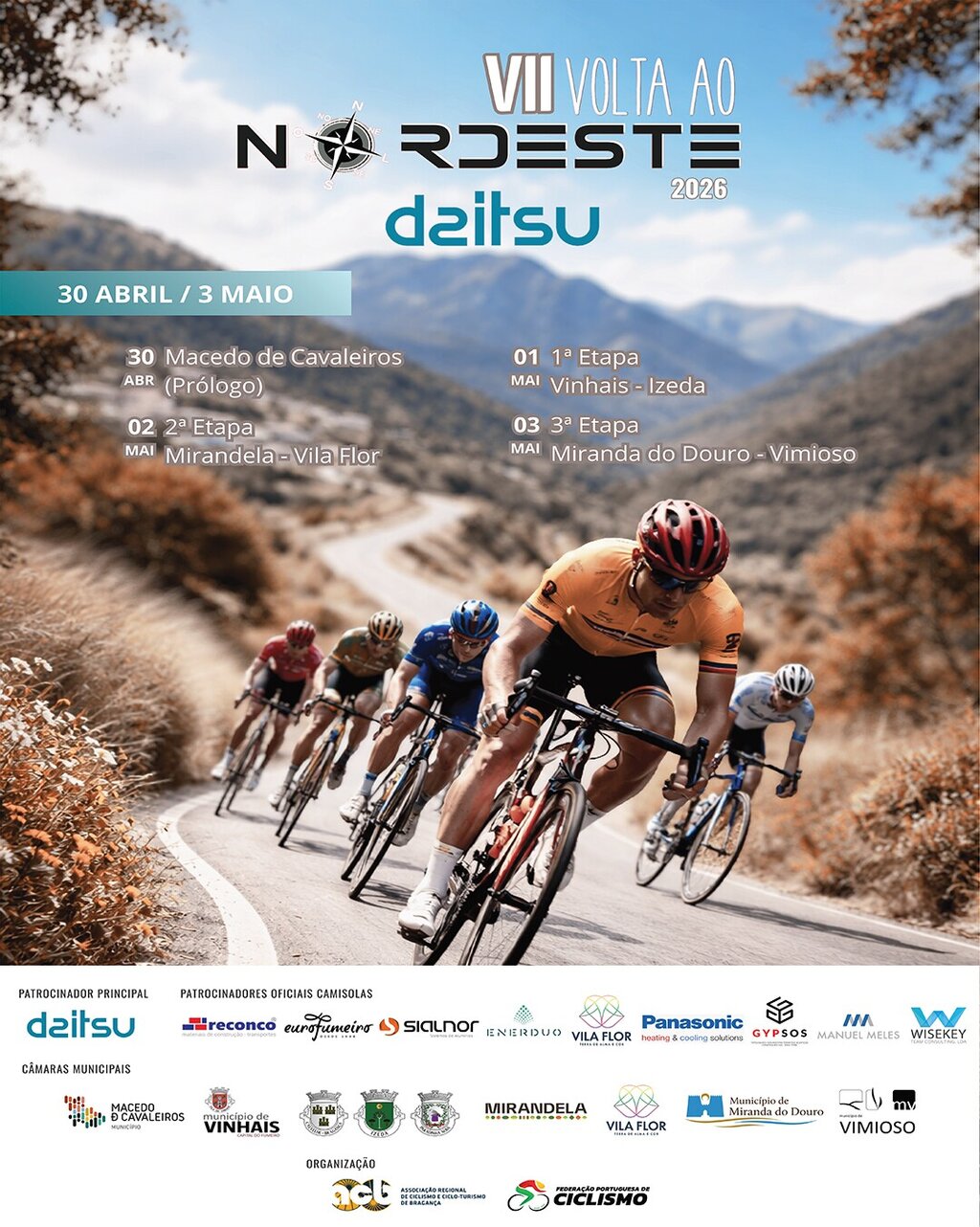 A VII Volta ao Nordeste Daitsu, organizada pela Associação de Ciclismo e Cicloturismo de Bragança e pela Federação Portuguesa de Ciclismo, decorre de 30 de abril a 3 de maio e traz o melhor do ciclismo amador ao Nordeste Transmontano.