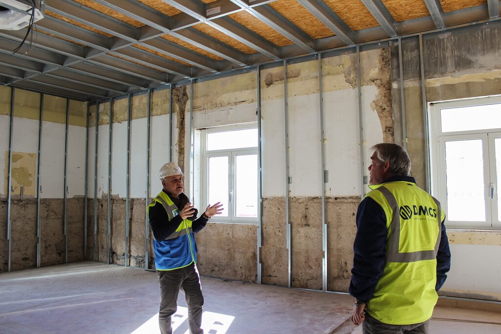 O vereador com o pelouro do Urbanismo, Paulo Rogão, visitou, esta manhã, as obras de requalificação da instalações da Câmara Municipal de Macedo de Cavaleiros, que têm conclusão prevista num espaço de três meses. Fazendo-se acompanhar pela técnica da autarquia, a arquiteta Sandra Abrunhosa, e pelo engenheiro responsável, a visita permitiu averiguar a evolução das obras.