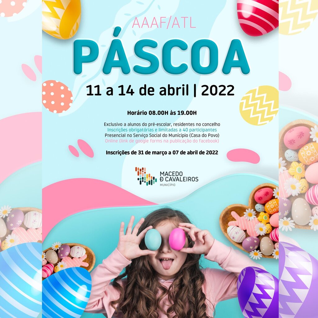 O Município de Macedo de Cavaleiros promove de 11 a 14 de abril o programa de “AAAF/ATL – Páscoa 2022”, que visa proporcionar períodos de ocupação às crianças do Ensino Pré-Escolar, residentes no concelho.