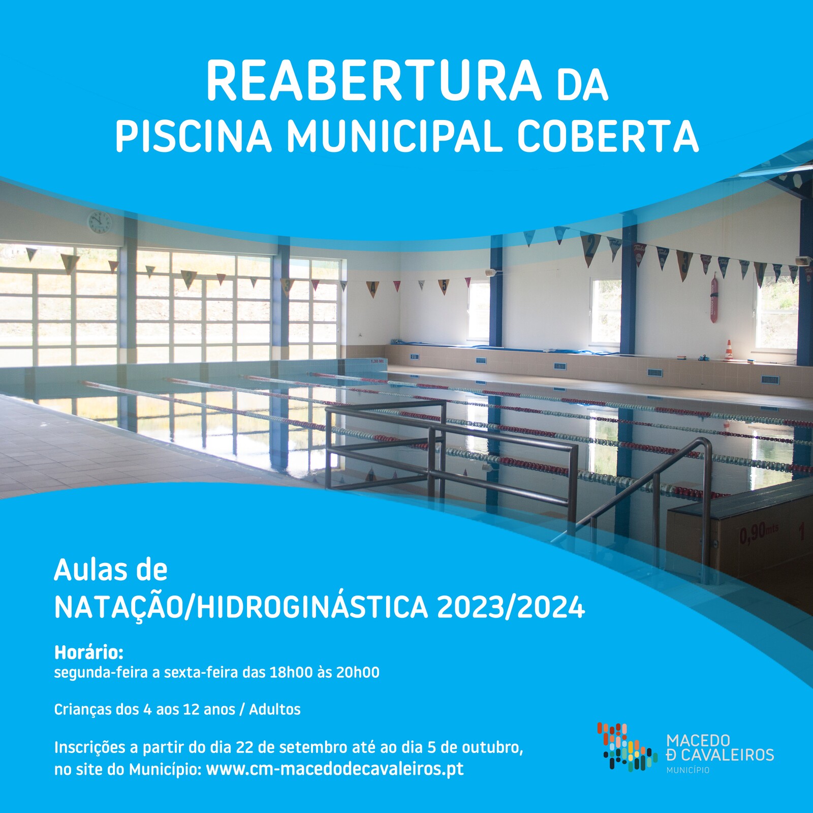 Para utilização da piscina municipal coberta é necessário que cada participante tenha touca, óculos, calção ou fato de banho e chinelos.