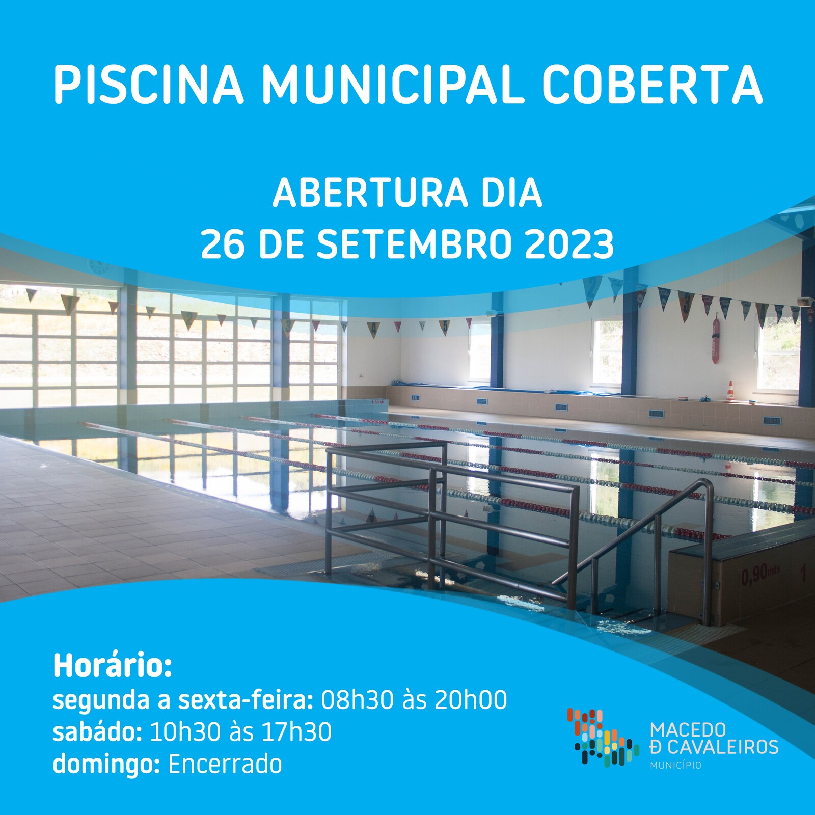 A partir de amanhã, terça-feira, 26 de setembro, já é possível utilizar a Piscina Municipal Coberta.