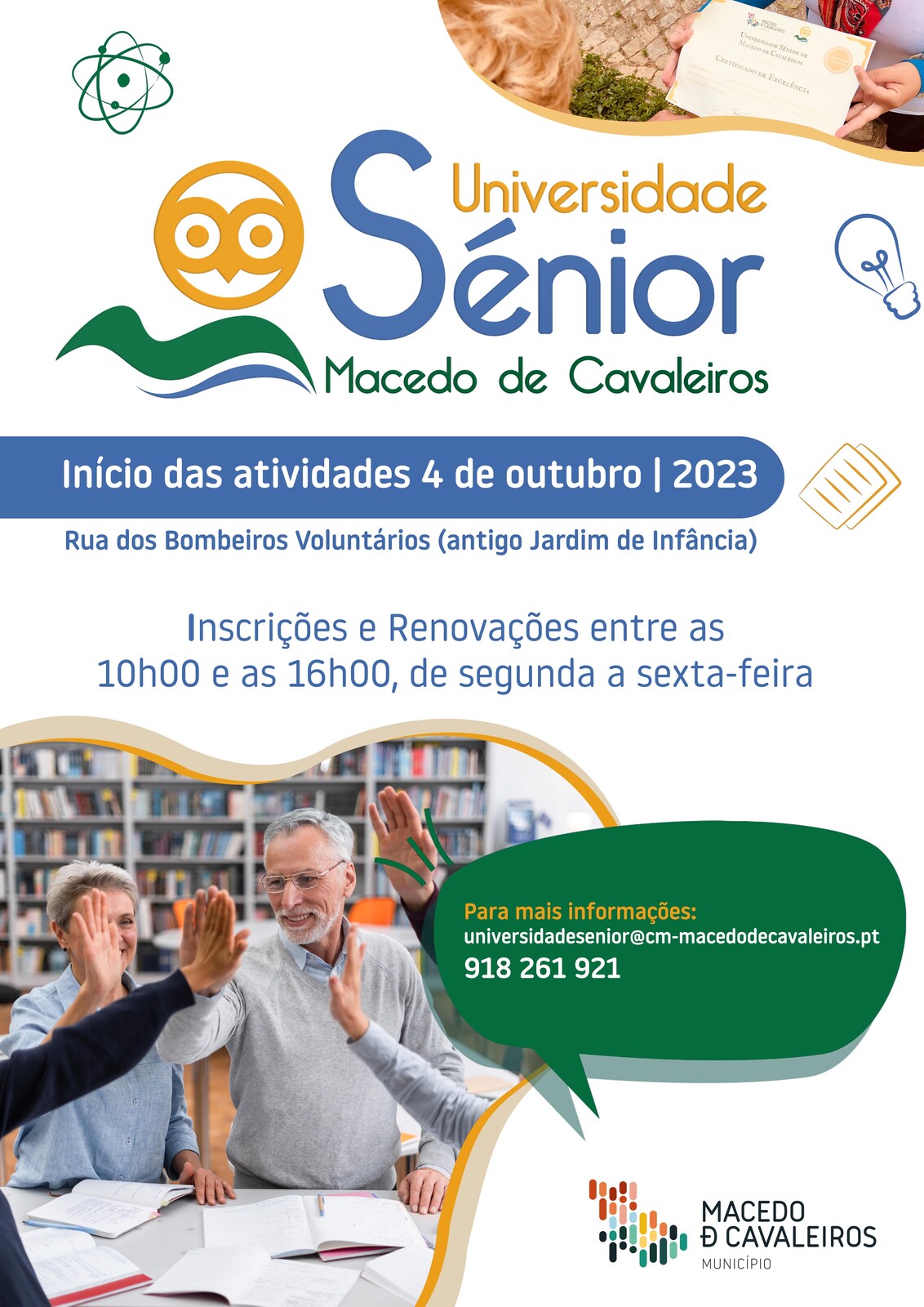 Se tiver disponibilidade e desejar integrar a equipa formativa da Universidade Sénior será bem vindo(a). Para tal, deve redigir um email para universidadesenior@cm-macedodecavaleiros.pt e referir o seu nome, formação, contacto telefónico e a área/oficina/disciplina que pretende dinamizar.