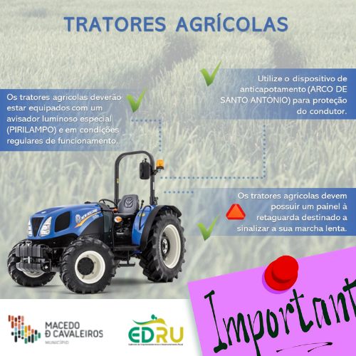 - Frequente ações de formação teóricas e práticas. Conheça os riscos da condução de tratores agrícolas e circule com segurança;
