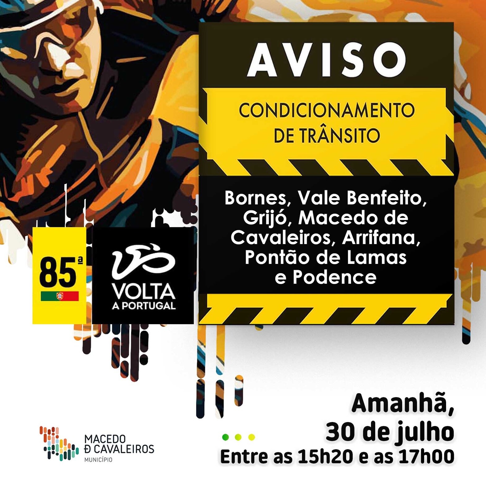 Devido a esta passagem o trânsito estará condicionado/cortado entre as 15h20 e as 17h00. Agradecemos a vossa compreensão!