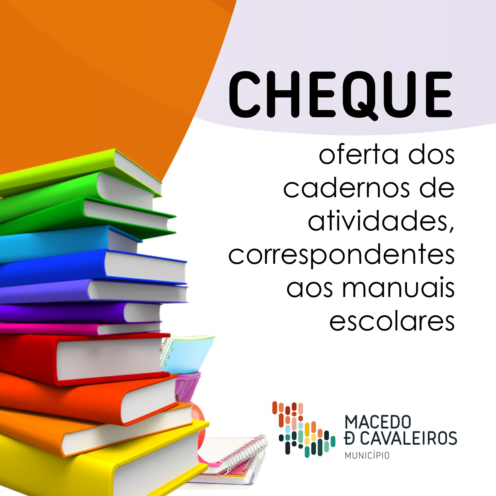 A partir do dia 12 de agosto e até ao dia 30 de setembro vão estar disponíveis, para levantamento pelos encarregados de educação, na Biblioteca Municipal A. M. Pires Cabral, os cheques-oferta para aquisição dos cadernos de atividades e manual de inglês (1º e 2º anos).