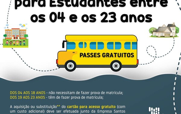 Passes gratuitos para estudantes dos 4 aos 23 anos