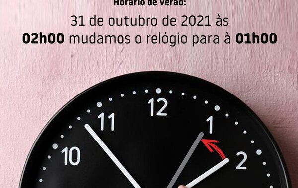 Lembramos que este fim de semana muda a hora. Na madrugada de 31 de outubro, não se esqueça de atrasar o seu relógio uma hora! -