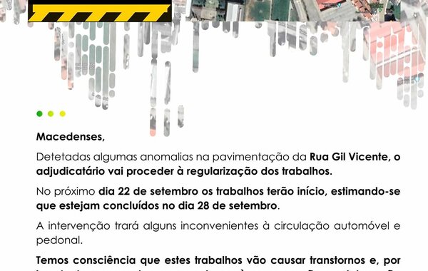 Macedenses, Detetadas algumas anomalias na pavimentação da Rua Gil Vicente, o adjudicatário vai proceder à regularização dos ... -