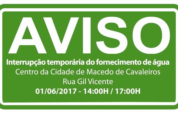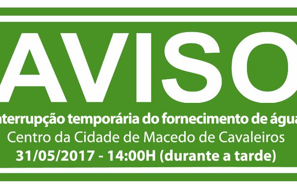 30 Maio 2017Aviso à População: interrupção temporária no fornecimento de água