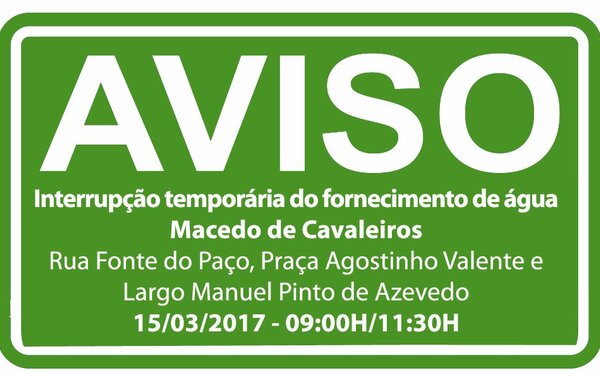 A Câmara Municipal de Macedo de Cavaleiros informa que o fornecimento de água será interrompido temporariamente na manhã de ... -