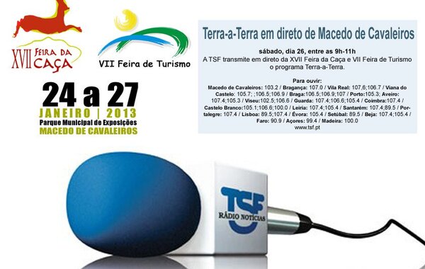 No próximo sábado, dia 26, entre as 9h e as 11h, a TSF emite em direto da XVII Feira da Caça e VII Feira de Turismo o ... -