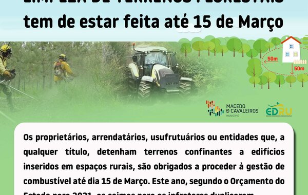 09 Fevereiro 2021Limpeza de terrenos florestais tem de estar feita até 15 de Março
