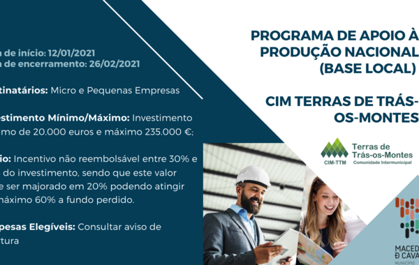 PROGRAMA DE APOIO À PRODUÇÃO NACIONAL (BASE LOCAL) - CIM TERRAS DE TRÁS-OS-MONTES