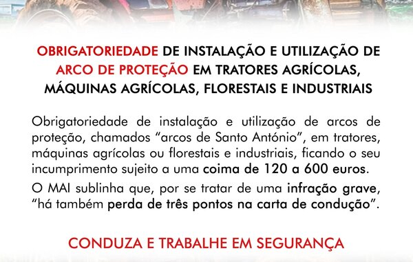 Obrigatoriedade de instalação e utilização de arcos de proteção, chamados “arcos de Santo António”, em tratores, máquinas ... -