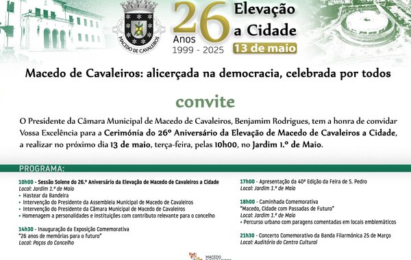13 Maio 2025Comemorações do 26.º Aniversário da Elevação de Macedo de Cavaleiros a Cidade