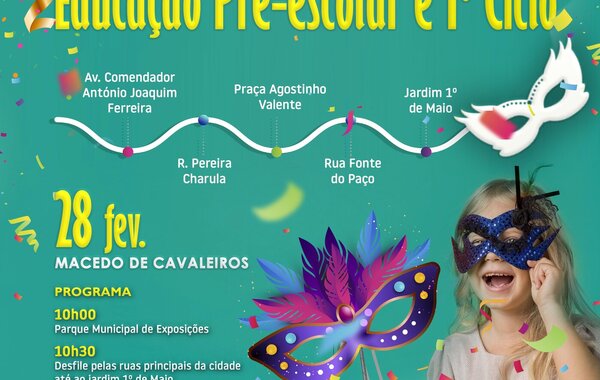 28 Fevereiro 2025Desfile de Carnaval da Educação Pré-Escolar e do 1º Ciclo do Ensino Básico