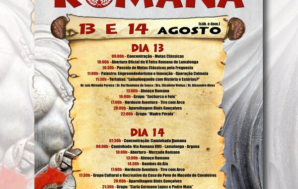Nos dias 13 e 14 de agosto, a Junta de Freguesia de Lamalonga organiza a V Feira Romana, com diversas atividades que prometem ... -