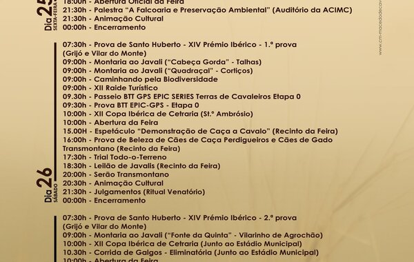 A XXIII Feira da Caça e Turismo vai decorrer, como habitualmente, em simultâneo com a XXV Festa dos Caçadores do Norte, de 24 ... -