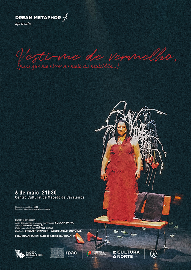 Vesti-me de Vermelho [para que me visses no meio da multidão] retrata, de forma poética, a ausência de contacto entre as pessoas que se cruzam todos os dias, mas não se falam. Reflete sobre a solidão característica da nossa sociedade de hoje, em que no decorrer dos dias, nos falta a coragem de assumir sentimento e manifestar o amor. Numa sociedade cada vez mais individualista, a solidão é real, concreta e estrutural. Esta mulher vive no sótão das suas memórias, de uma relação que sonha, e não se sabe muito bem se alguma vez chegou a existir, por falta de coragem em assumir o que sente. Este espetáculo pretende provocar no público um acordar para uma realidade constante e crescente, e ajudar a refletir sobre a nossa incapacidade de demonstrar amor.