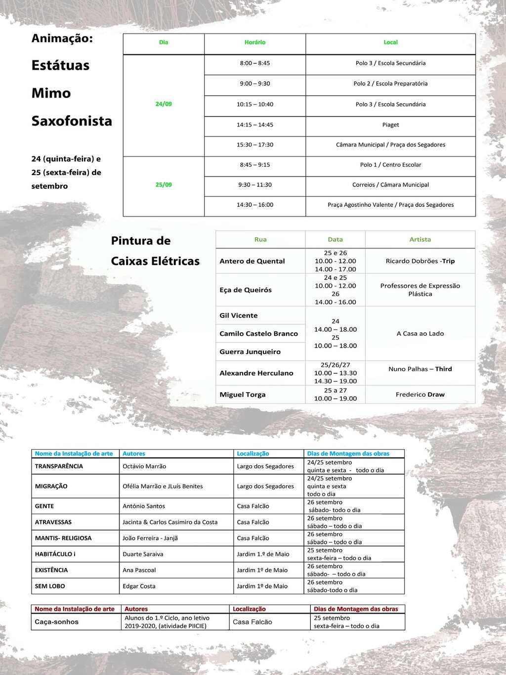 A 1.ª edição do festival de arte urbana acontece de quinta a domingo e consta de intervenções de arte urbana, bem como de espetáculos de rua, que visam despertar o interesse da comunidade pela cultura e arte contemporâneas. Percorra as ruas da sua cidade e descubra a arte que nelas se faz.
