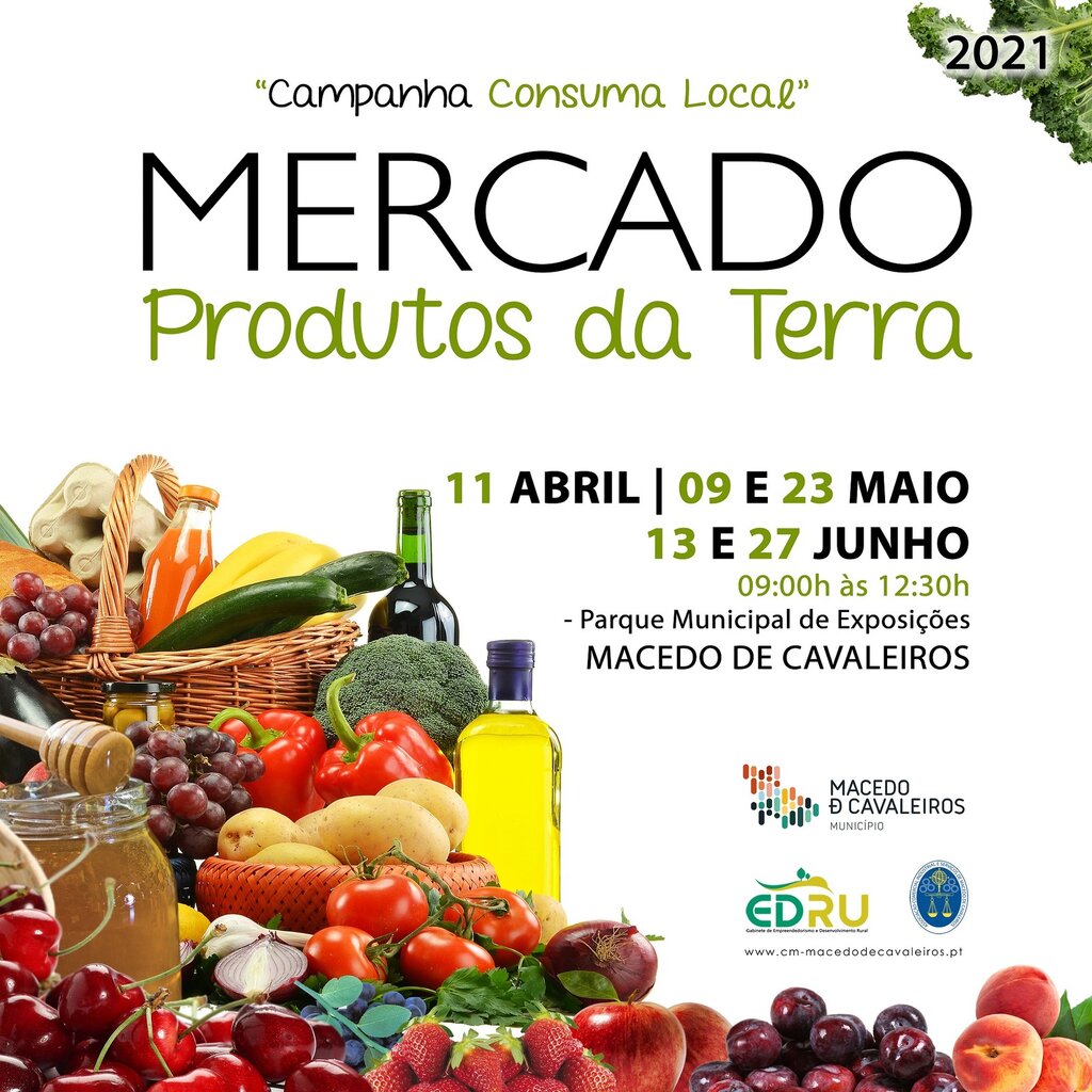 Mercado - Produtos da Terra, a realizar nos dias 11 de abril, 09 e 23 de maio, 13 e 27 de junho, entre as 09:00h e as 12:30h.
