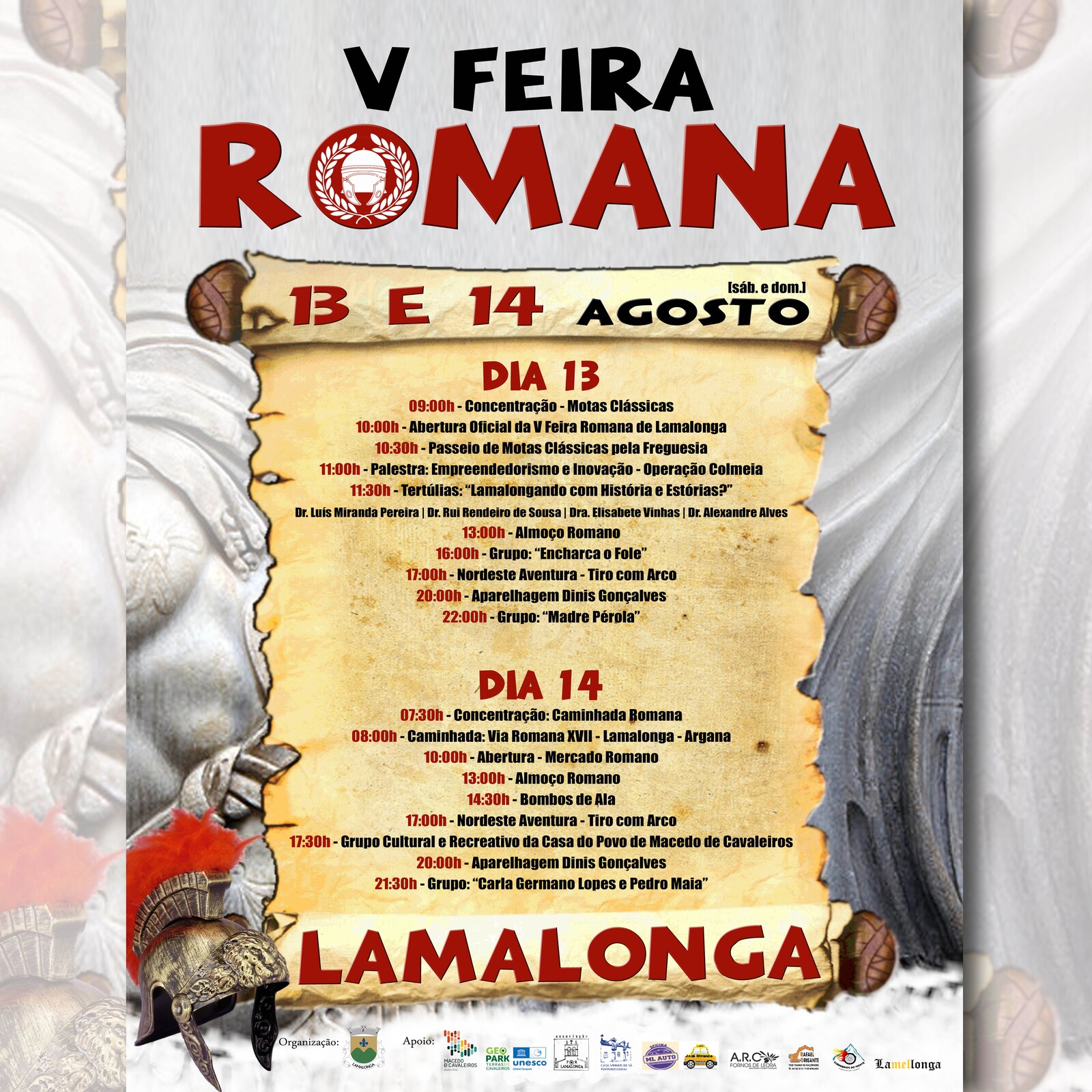 Nos dias 13 e 14 de agosto, a Junta de Freguesia de Lamalonga organiza a V Feira Romana, com diversas atividades que prometem recriar o passado, levando os visitantes aos tempos Romanos.