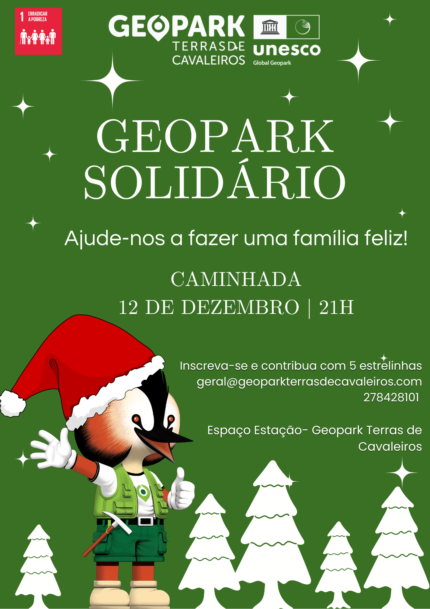 O Geopark Terras de Cavaleiros promove a segunda edição do "Geopark Solidário". Este ano será sob a forma de uma caminhada, com o objetivo de fazer mais uma familia feliz neste Natal.