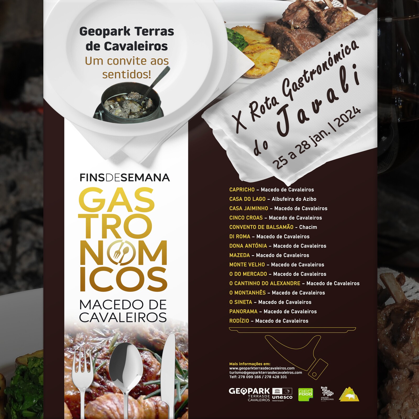 De 25 a 28 de janeiro, realiza-se a X Rota Gastronómica do Javali, onde o javali estará em destaque nos restaurantes aderentes.