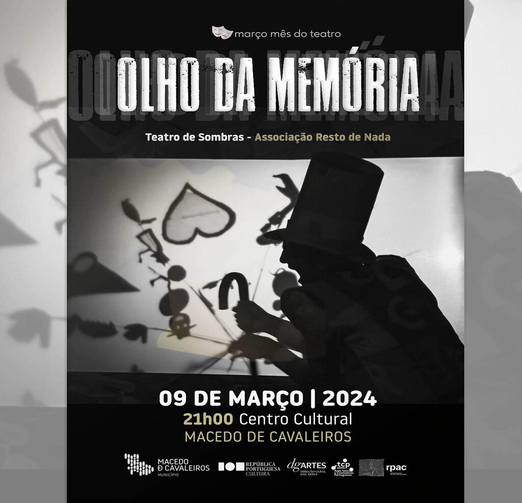 "Olho da Memória", um espetáculo da Associação Resto de Nada, que explora as raízes das tradições lusas, onde o teatro de sombras se ergue como um eco divertido do passado.