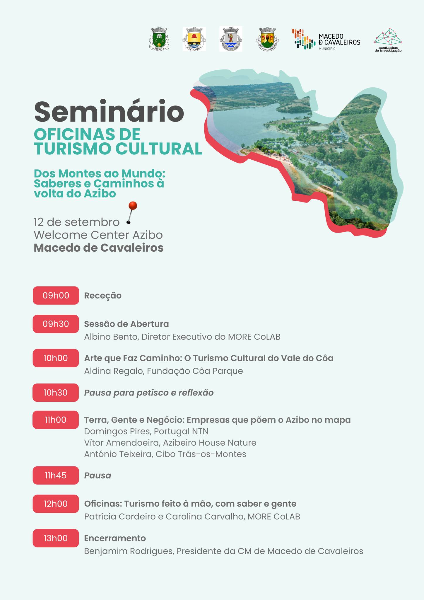 Na próxima sexta-feira, dia 12 de setembro, pelas 09h00, terá lugar, no Welcome Center Azibo, um seminário de Oficinas de Turismo Cultural subordinado ao tema “Dos Montes ao Mundo: Saberes e Caminhos à Volta do Azibo”.