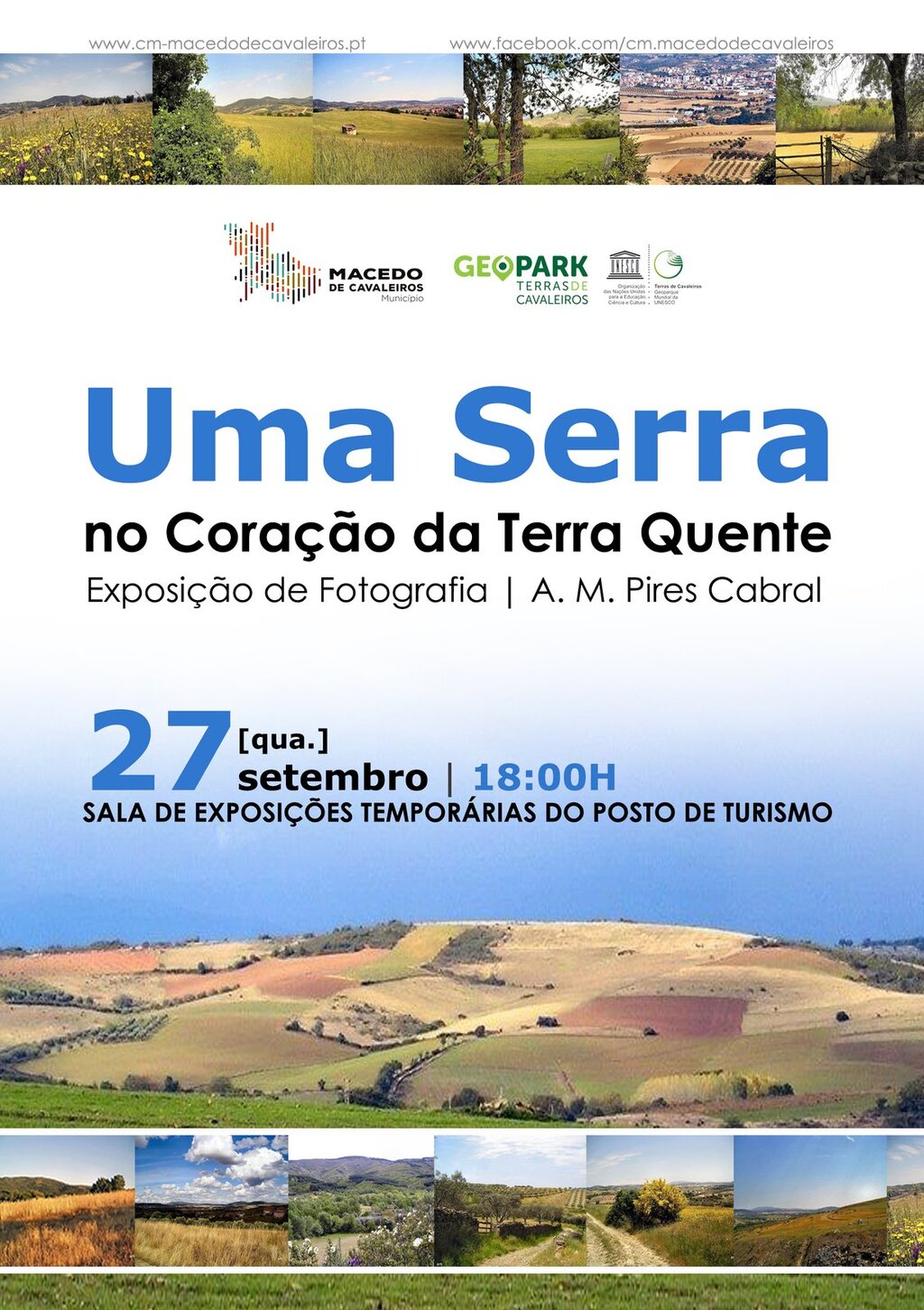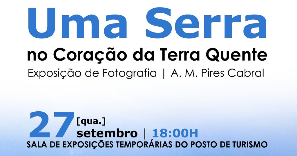 No âmbito das comemorações do dia Mundial do Turismo, a Câmara Municipal de Macedo de Cavaleiros inaugura no próximo dia 27 de setembro, pelas 18:00h, a exposição de fotografias "Uma Serra no Coração da Terra Quente", da autoria do escritor e artista plástico A.M. Pires Cabral.