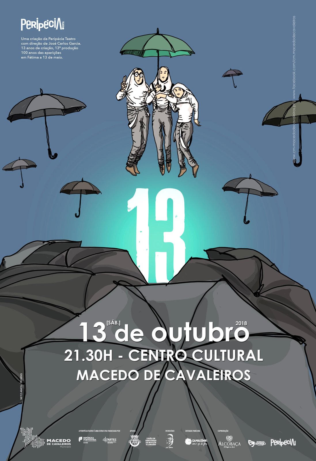 Em 2017 celebrou-se o 100.º aniversário das aparições de Fátima. Estas celebrações coincidiram com o 13.º aniversário da Peripécia Teatro e a sua 13.ª produção. Os três pastorinhos são personagens da primeira criação desta companhia, estreada em Maio de 2004: “IBÉRIA - A Louca História de uma Península”. A 13ª produção, 13, estreou em maio de 2017 a 40 Km da Cova de Iria: Benedita, Concelho de Alcobaça.