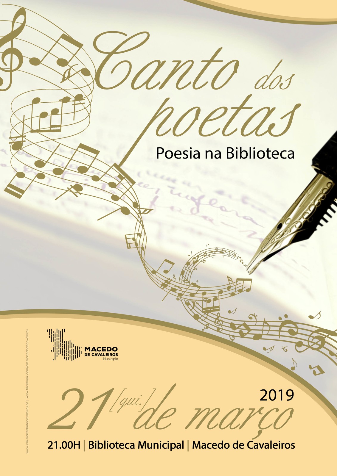 O Dia Mundial da Poesia assinala-se por todo o mundo. A Biblioteca Municipal associa-se a esta comemoração com uma noite de poemas cantados, dado que a relação entre a poesia e a música sempre foi íntima, quase complementar.