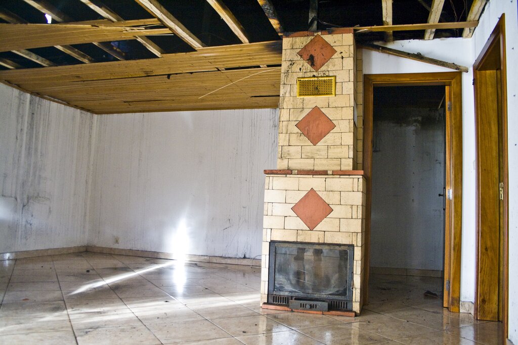 O teto da casa ficou quase integralmente destruído após o incêndio resultante do aquecimento da chaminé, no passado dia 1 de janeiro. Esta família (casal e uma filha) de Travanca, emigrada na França, viram as férias estragadas, mas já regressaram ao trabalho com a garantia do apoio da Câmara Municipal.