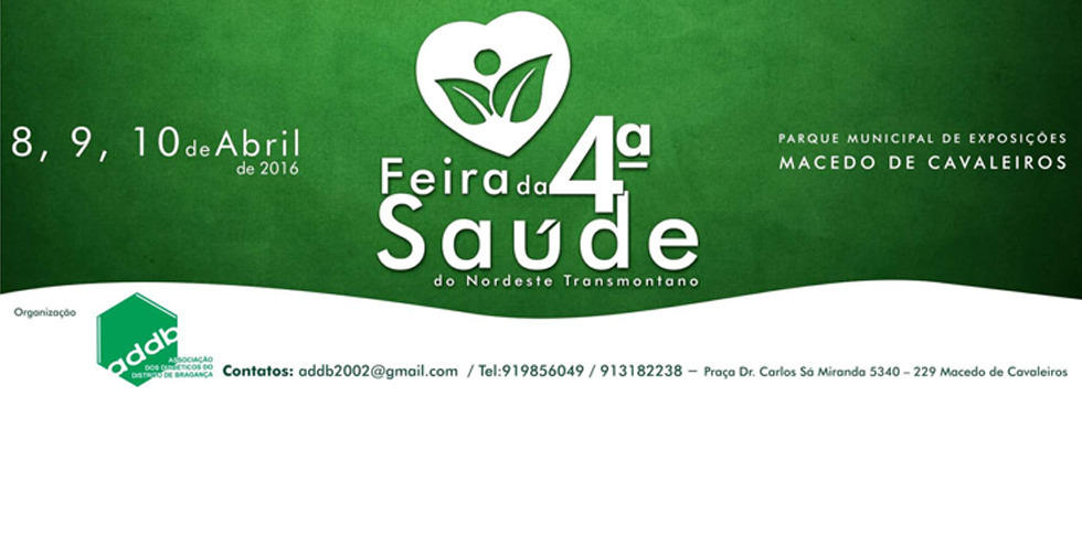 A Feira da Saúde do Nordeste Transmontano decorre de 8 a 10 de abril, no Parque Municipal de Macedo de Cavaleiros. É uma iniciativa anual promovida pela Associação dos Diabéticos do Distrito de Bragança com o apoio da Câmara Municipal.