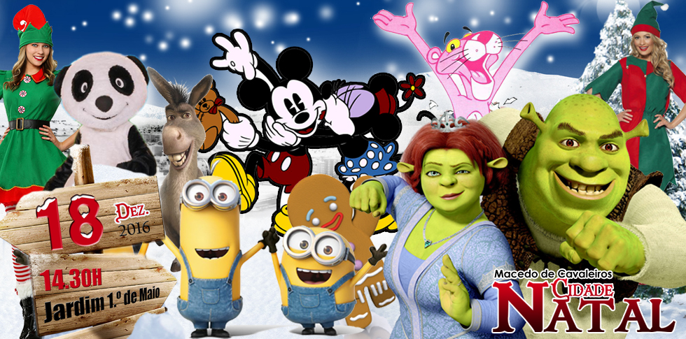 O Mikey e a Minnie, o Shrek, a Fiona e o inseparável e divertido burro... O Panda, os Minions, a Pantera Cor de Rosa e mais, muito mais... Todos eles vêm à Chegada do Pai Natal, no domingo às 14:30H em Macedo de Cavaleiros... e tu, vais faltar?