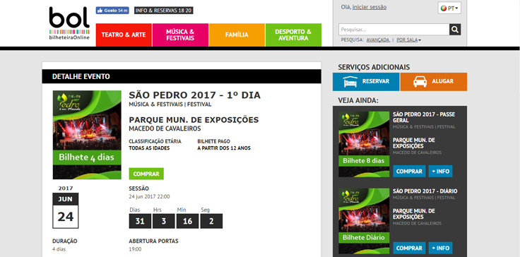 Os bilhetes estão disponíveis para compra na Bilheteira On-Line (BOL), nas Lojas FNAC, Worten e Note!, no El Corte Inglés, Pousadas da Juventude, Estações de CTT e na ABEP. No Posto de Turismo de Macedo de Cavaleiros vão estar disponíveis a partir de 16 de junho.