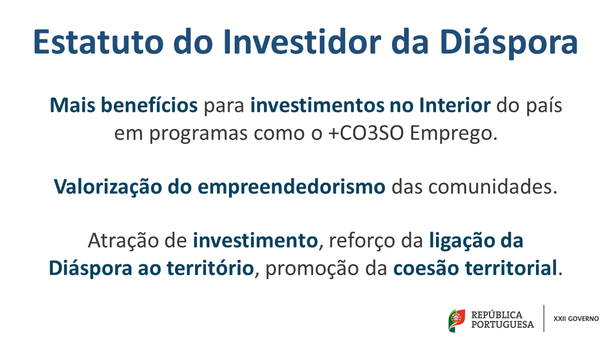A declaração do Estatuto de Investidor da Diáspora, acessível mediante preenchimento do formulário, será necessária para as candidaturas das várias medidas constantes do programa aprovado.