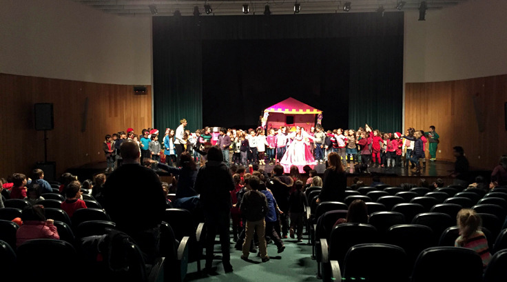 Foram realizados 4 espetáculos de teatro, para as diferentes turmas das cerca de 700 crianças, ao longo dos dois dias. Em palco, a “Casa dos Doces” com muita música, interação e uma divertida história, de personagens diversas em que, a que mais atenção suscita foi, naturalmente, o Pai Natal.